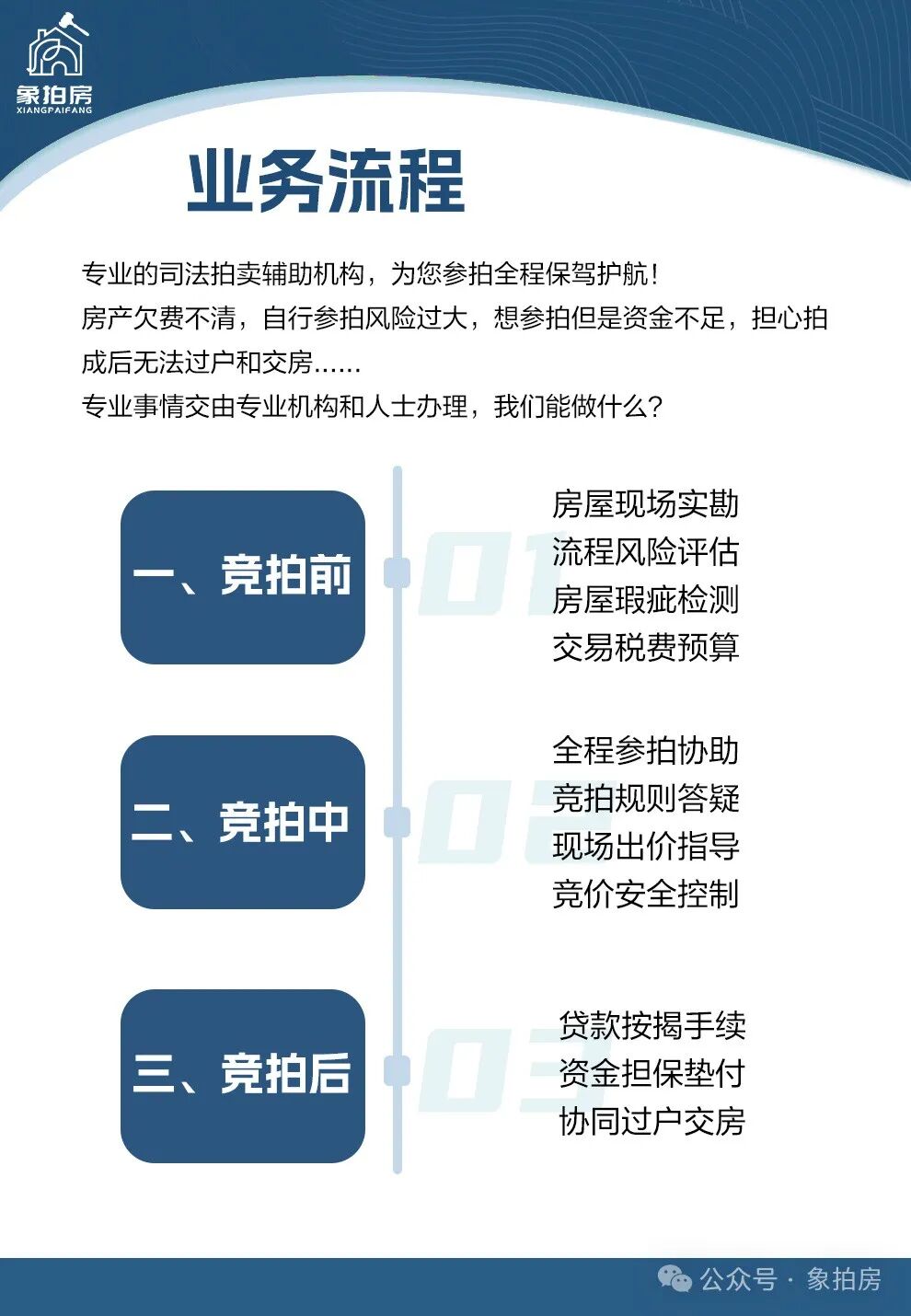 象拍房 — 是京东拍卖官方的法拍服务商,专注于提供专业的法拍房保障服务。我们与京东共同打造了高效专业的腾房服务团队。选择象拍房,即代表将由京东为您直接提供的全面风险保障,让您的每一次参拍都更加安心。