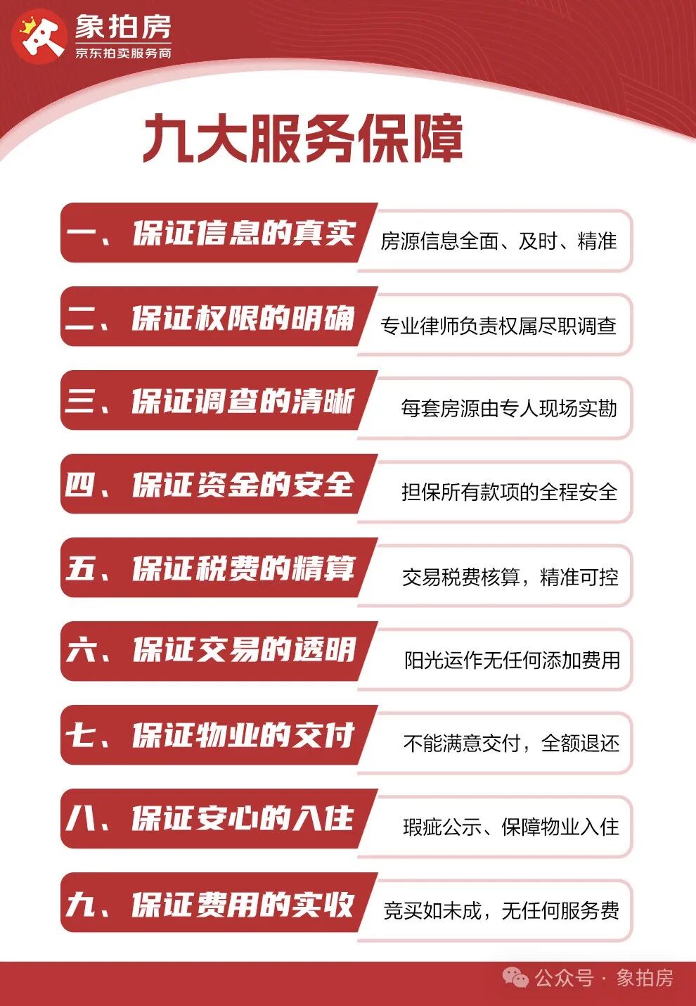象拍房 — 是京东拍卖官方的法拍服务商,专注于提供专业的法拍房保障服务。我们与京东共同打造了高效专业的腾房服务团队。选择象拍房,即代表将由京东为您直接提供的全面风险保障,让您的每一次参拍都更加安心。