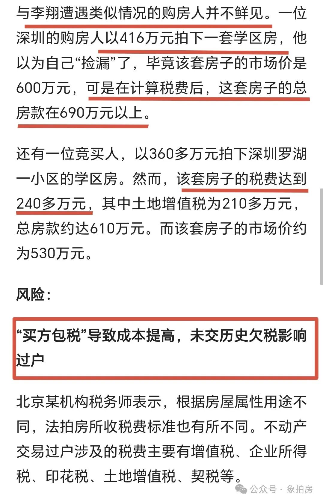 购买法拍房可能涉及一系列复杂的税费,这是每位买家必须面对的重要风险之一。今天,小编要分享的真实案例便涉及到了买房时需缴纳的高额税费。需要注意的是,这些税费通常是根据竞拍价格来征收的。