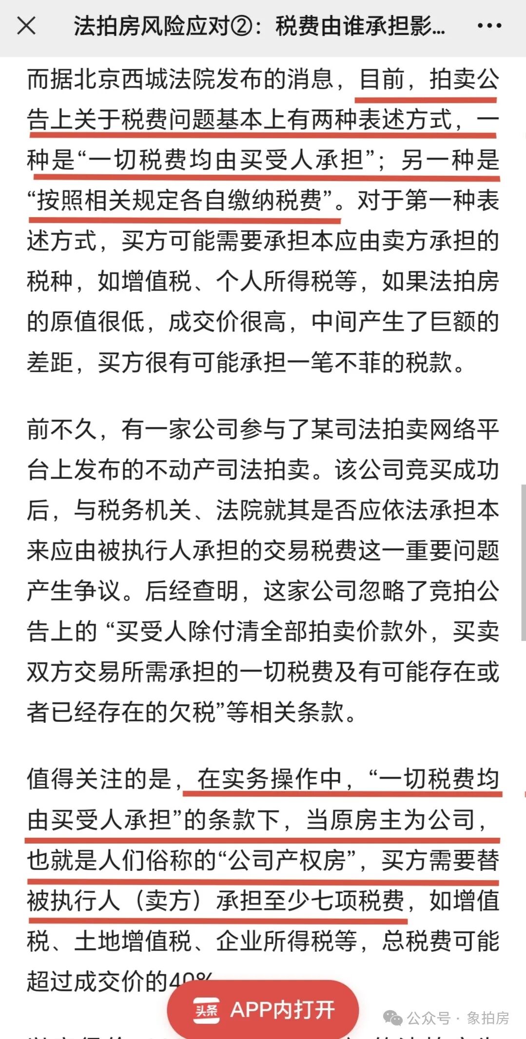 因此,强烈建议在参与竞拍前,买家应仔细阅读法院的拍卖公告,特别是税费条款。了解清楚税费责任归属——是各自承担还是由买受人全部负责,可以避免事后因高额税费产生悔拍的情况。