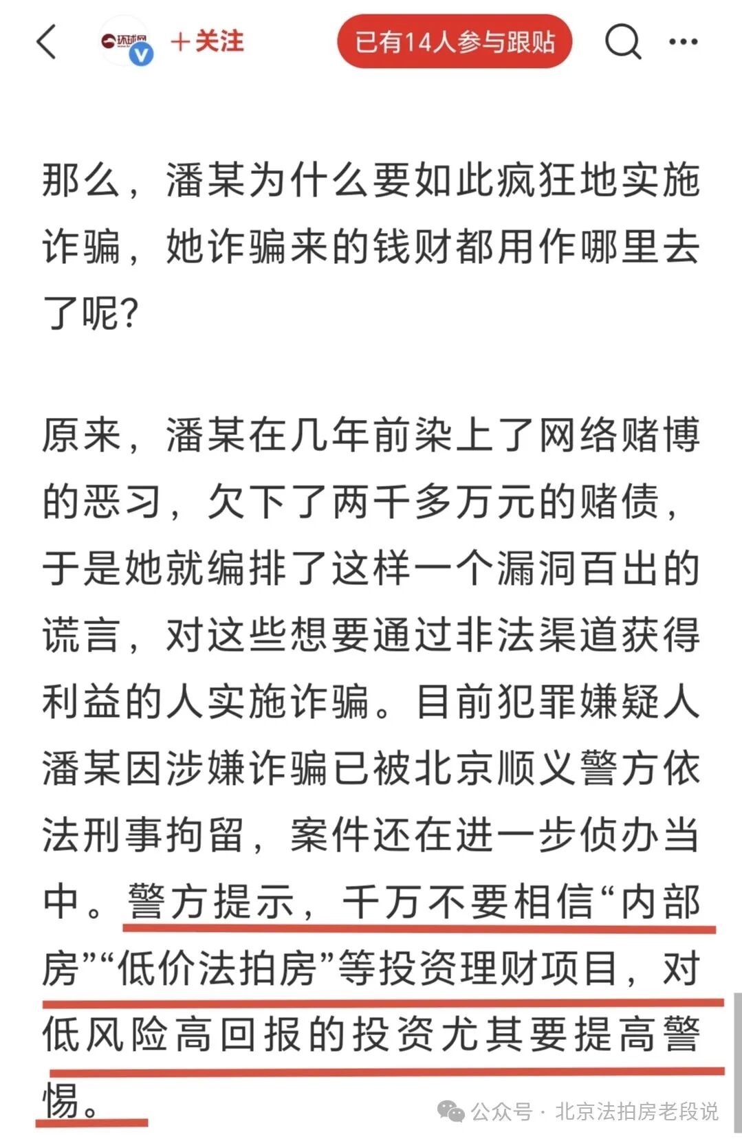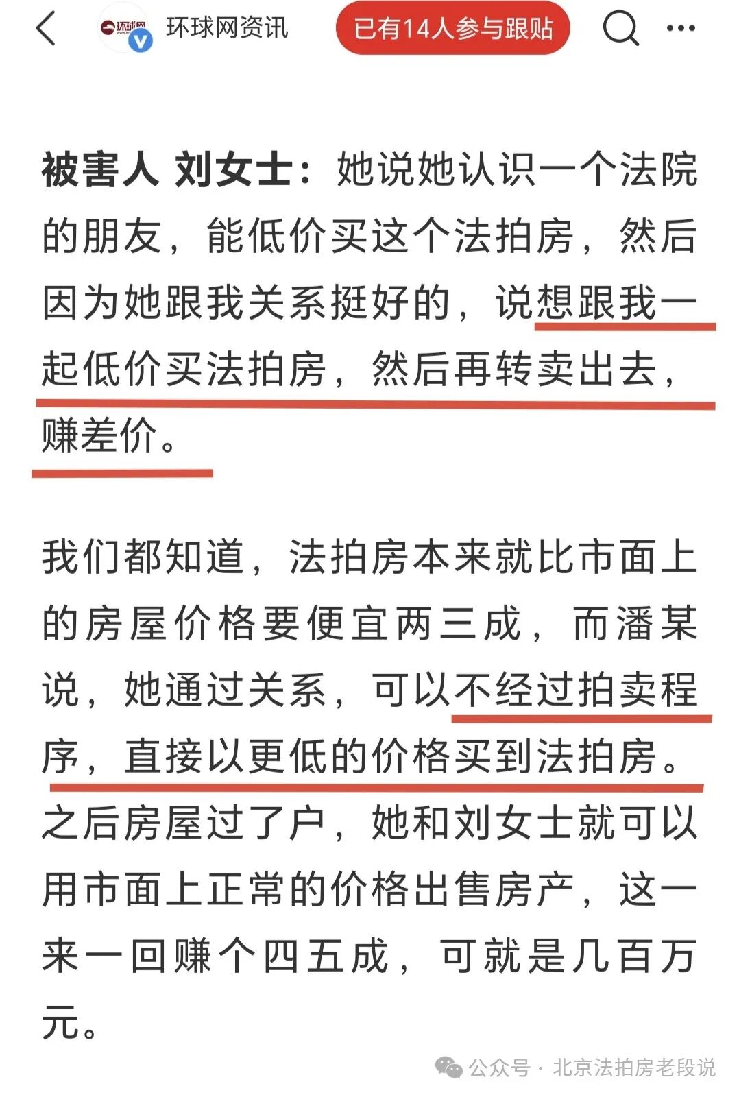 法拍圈有老话:“你可以不买,但一定要让你的朋友买“!你得让朋友知道这事儿。”这样至少他们跳进去之前,能清楚知道自己在干啥