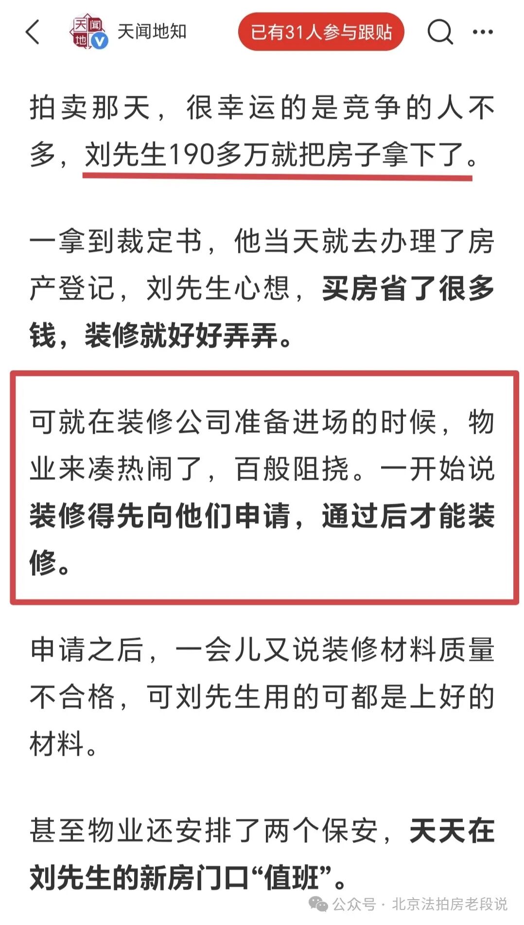 法拍圈有老话:“你可以不买,但一定要让你的朋友买“!你得让朋友知道这事儿。”这样至少他们跳进去之前,能清楚知道自己在干啥