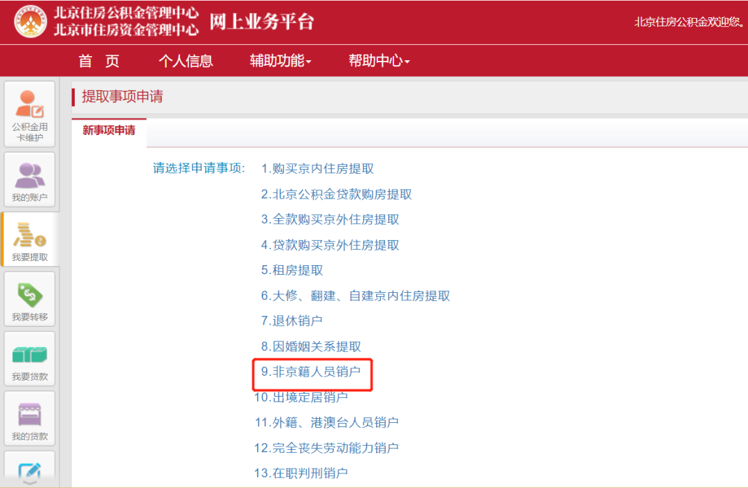 在系统的左侧导航栏中,明确点击【我要提取-提取住房公积金-提取申请】,随后在清晰呈现的新事项申请列表中,精准定位并点击【9.非京籍人员销户】选项。作为非本市户籍的您,请仔细阅读并郑重勾选《个人信息核查授权、承诺书》,以此作为诚信办理的基石。随后,系统将自动跳转至事项申请页面,其中“基本信息”栏目将直观展示您的个人基本信息,“身份证签发机关”一栏请您依据身份证原件如实填写,而“户籍”与“账户封存时间”则将由系统自动显示,确保信息准确无误。若发现“户籍”信息与实际不符,您可通过点击页面上方的【个人信息】-【户籍所在地】进行便捷修改,而“账户封存时间”则属于系统设定,无需也无法手动更改。