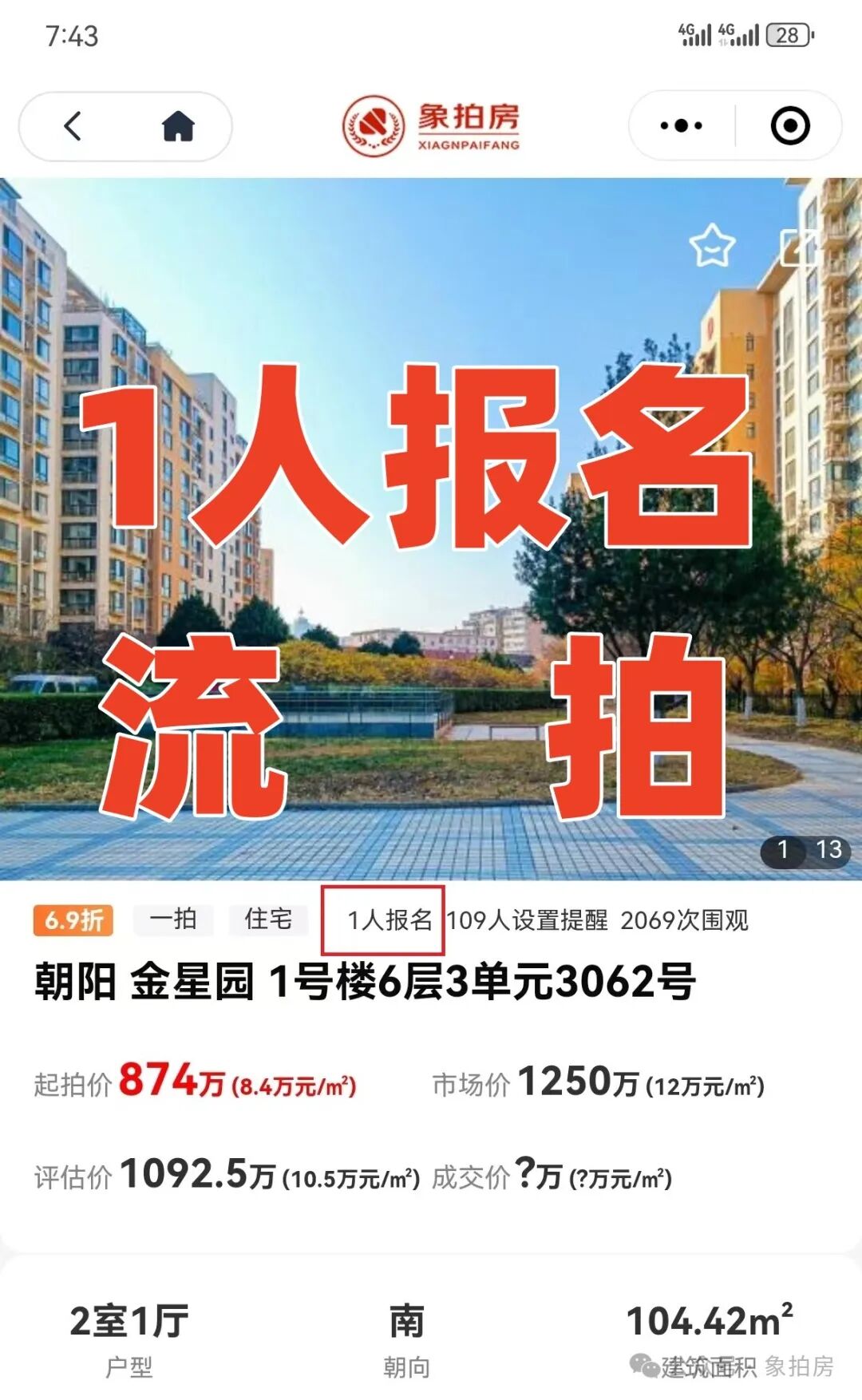 成交情况:报名没出价流拍