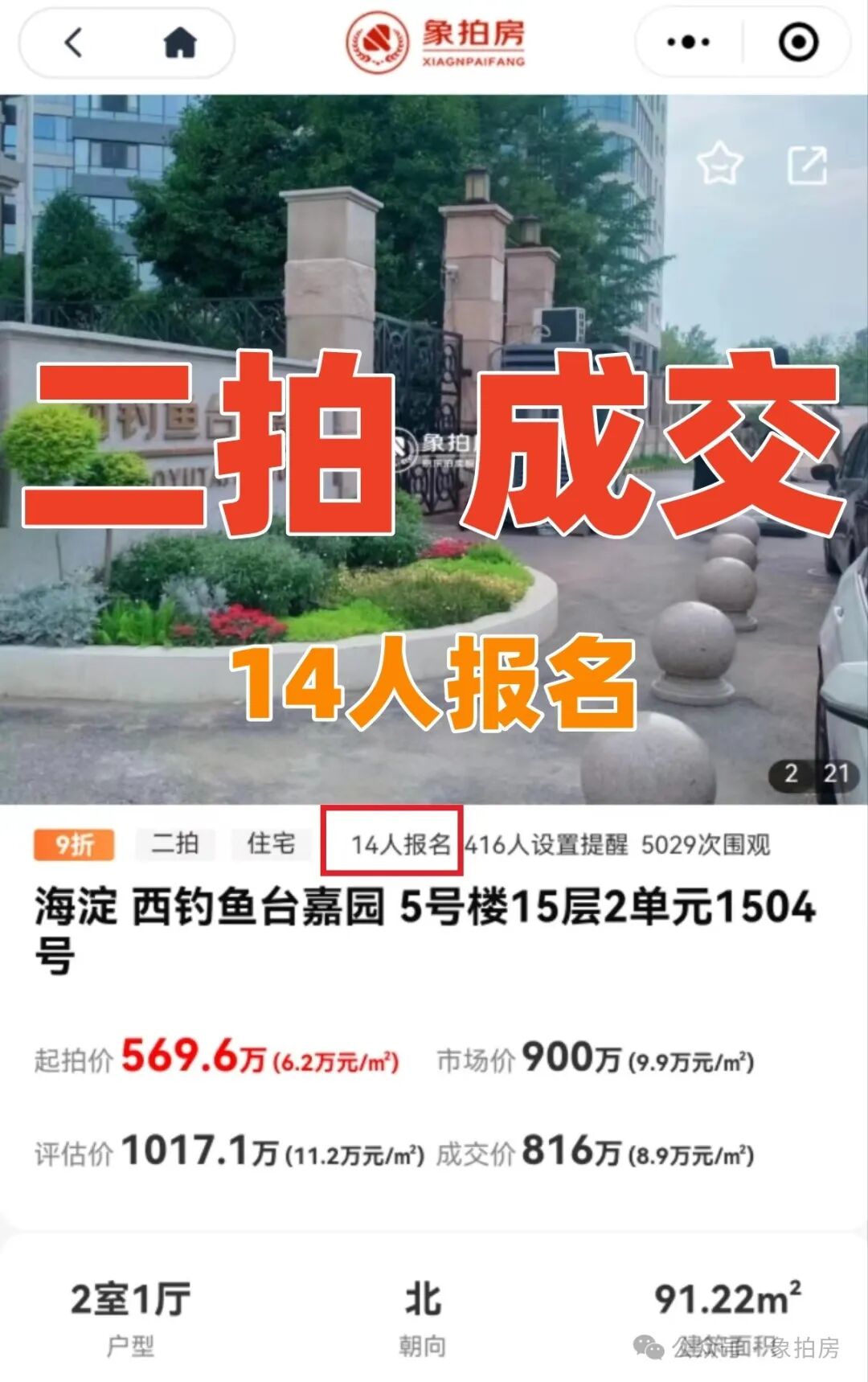 从无人问津到14人激烈竞拍,这套西钓鱼台的房子在二拍时吸引了众多买家,最后高于一拍起拍价成交。