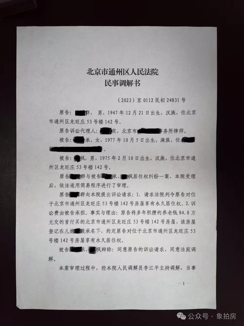 调解判决书内容分析:北京市通州区法院审理了一起关于居住权的民事纠纷案件,这也是《民法典》实施以来,法拍房市场中首次真正涉及居住权的问题。此套房产引发了购房者和投资者的广泛关注,尤其是在法拍房市场中的居住权适用和执行问题。