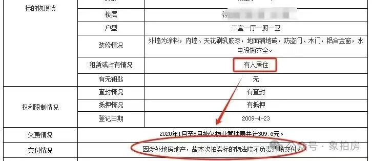 🏠 真实案例:法拍房拍卖公告中的“不负责清场交付”