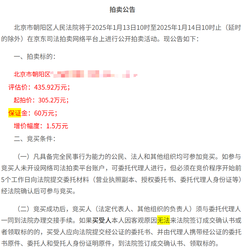保证金要求高:通常为起拍价的10%-20%,拍前必须全额缴纳,动辄几十万甚至上百万。