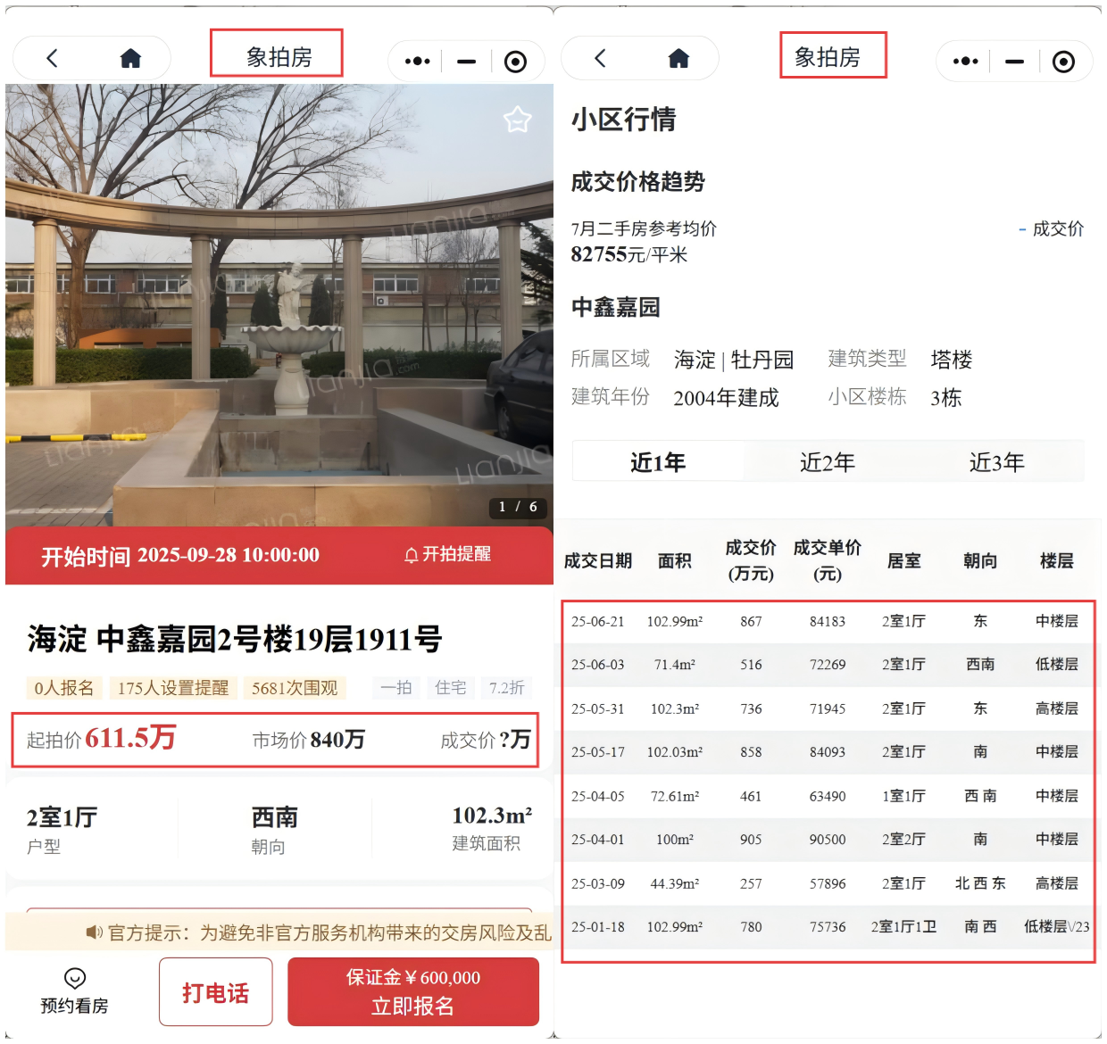 2.多对比数据:可以在象拍房APP/小程序/官网,看看同小区、同面积近半年成交价,再对比市场上二手房价格。