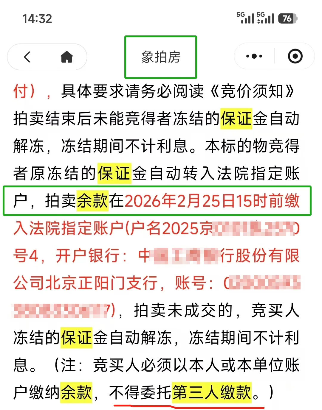 如果说房改房的坑是“隐性”的,那尾款支付的坑就是“明晃晃的陷阱”——公告里明确写明:拍卖余款在2026年2月25日15时前汇入指定账户。