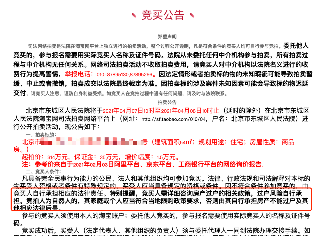 在司法拍卖过程中,法院会对拍卖标的的情况进行公示。公示的内容通常是制式的文件,但细节部分可能略有不同。特别提示的内容会以醒目的红色或加粗的字体进行展示,以确保竞买人能够清楚地了解相关重要信息。法院公告具有相应的法律效力,竞买人需要认真阅读并遵守相关规定。