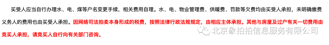 关于税费和上述案例中提到的物业欠费,法院公告中不会显示具体金额。因此,买受人需要提前做好尽调,了解相关费用情况,并计算好购房成本及出价预算再进行参拍。
