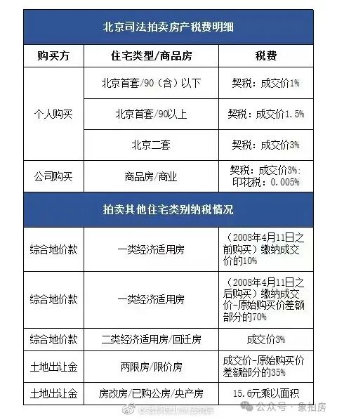2.税费相对便宜:以个人在北京购买一套90平以下的商品房为例,只需要缴纳成交价百分之一的税费。下图为在北京购买法拍房的税费缴纳明细: